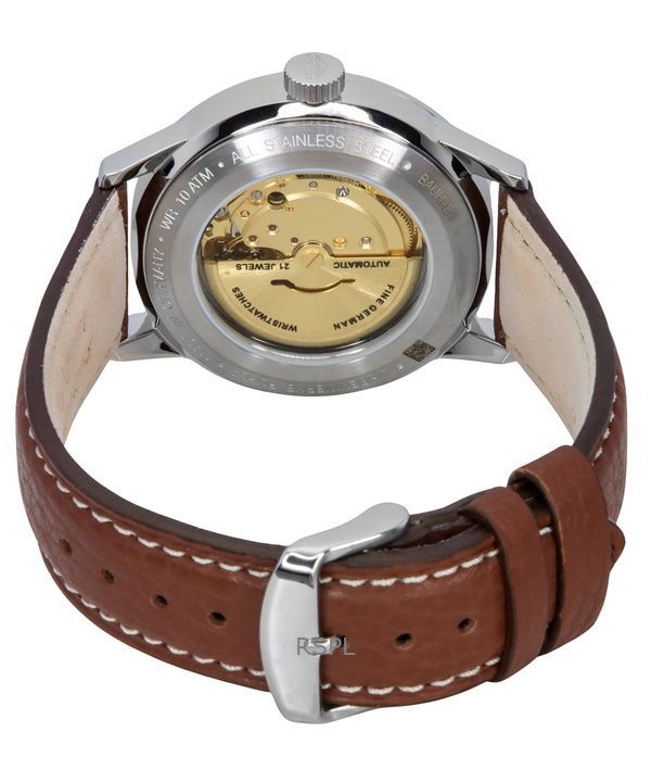 Bauhaus Aviation cinturino in pelle quadrante beige automatico 23665 100M orologio da uomo