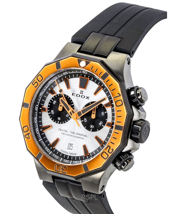 Edox Delfin The Original Cronografo Cinturino in Gomma Quadrante Argento Quarzo Diver's 10112-37GNOCA-ANO 200M Orologio da Uomo