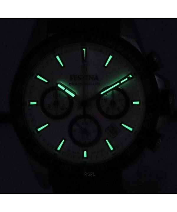 Festina cronografo senza tempo cinturino in pelle quadrante bianco F20561-1 F205611 100M orologio da uomo
