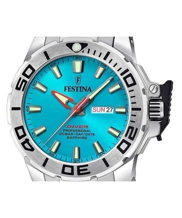 Festina Diver Orologio da uomo in acciaio inossidabile con quadrante turchese al quarzo F20665-6 200M con cinturino extra