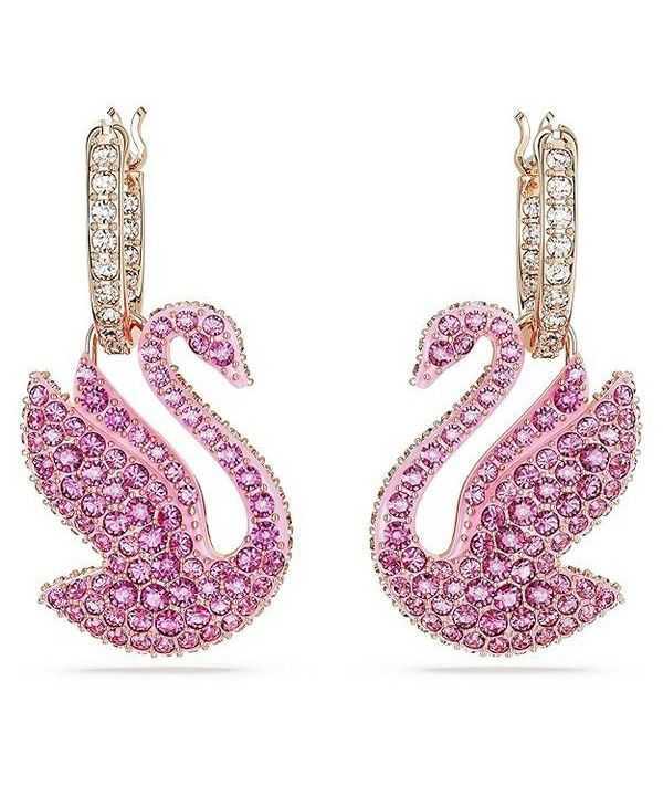 Orecchini pendenti Swarovski Swan rosa con cristalli e placcati in oro rosa 5647544 per donna