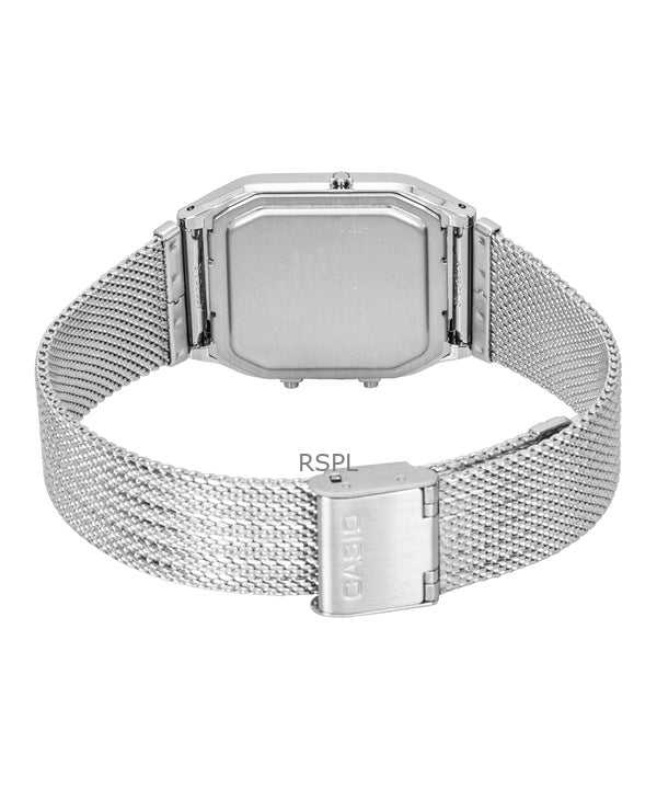 Orologio Casio Vintage Analogico Digitale in Acciaio Inox con Cinturino in Maglia Quadrante Argento al Quarzo AQ-230EM-7A Unisex