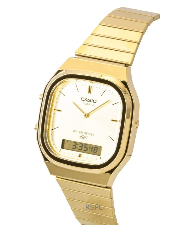 Orologio Casio Vintage Analogico Digitale in Acciaio Inox con Quadrante Dorato al Quarzo AQ-240EG-9A Unisex