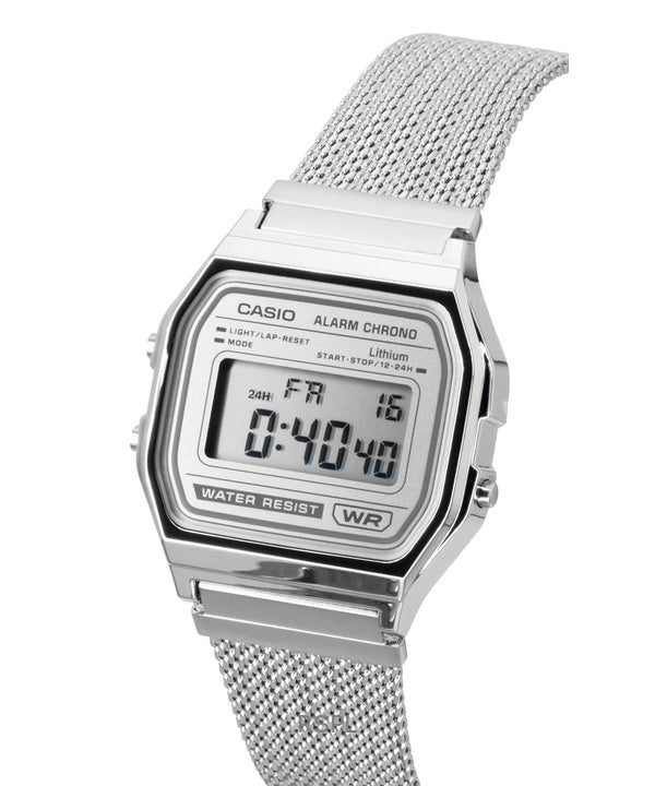 Orologio Casio Vintage Digital in acciaio inossidabile con cinturino in maglia al quarzo A158WEM-7 unisex