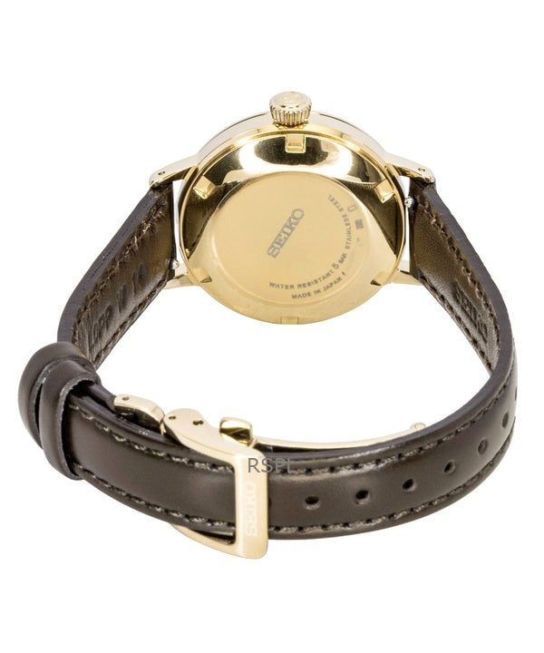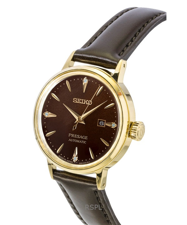 Orologio da donna Seiko Presage Cocktail con dettagli in diamanti e cinturino in pelle automatico SRE020J1
