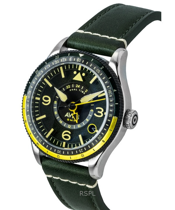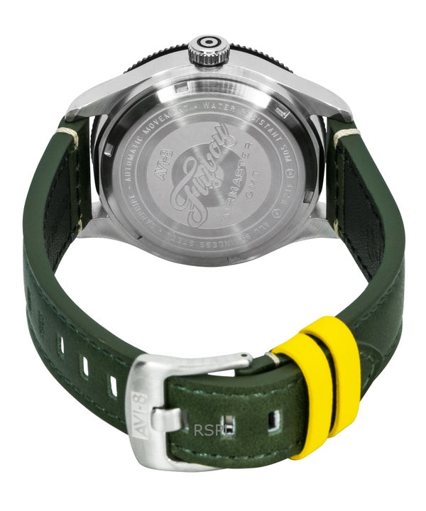 Orologio da uomo automatico AVI-8 Flyboy Airmaster GMT con cinturino in pelle verde fusoliera e quadrante verde AV-4128-03