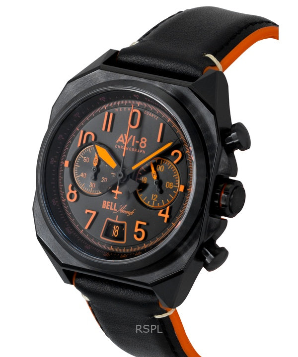 Orologio da uomo AVI-8 Bell X-1 Machbuster Cronografo Super Sonic Cinturino in pelle nera Quadrante nero Quarzo AV-4118-04