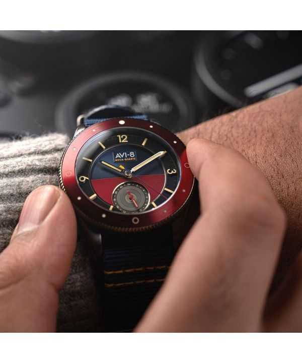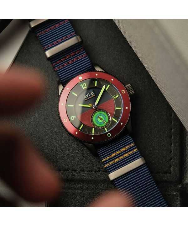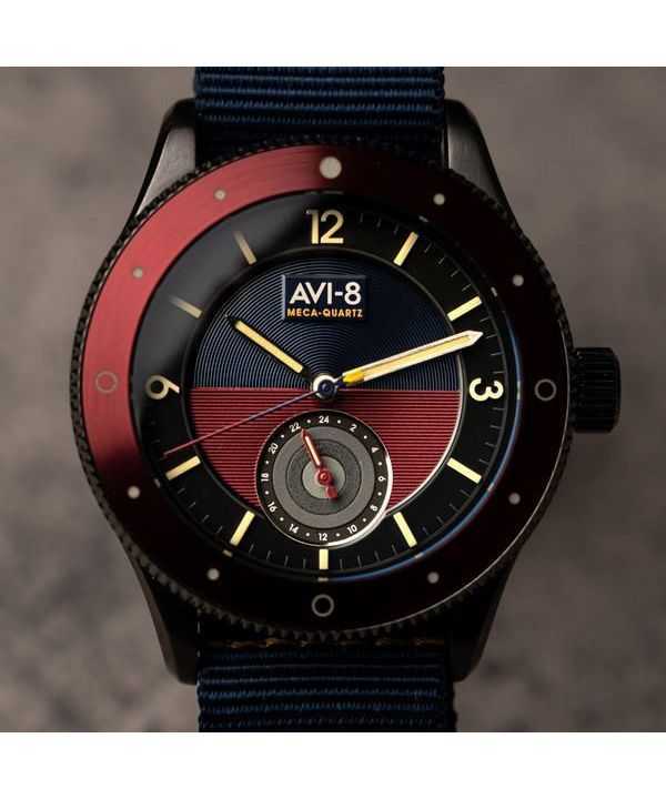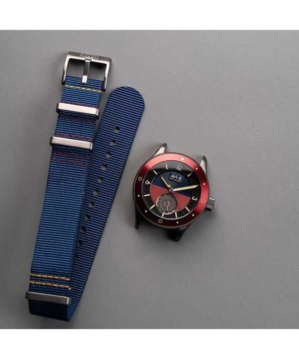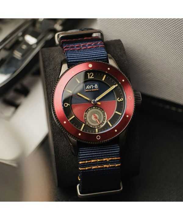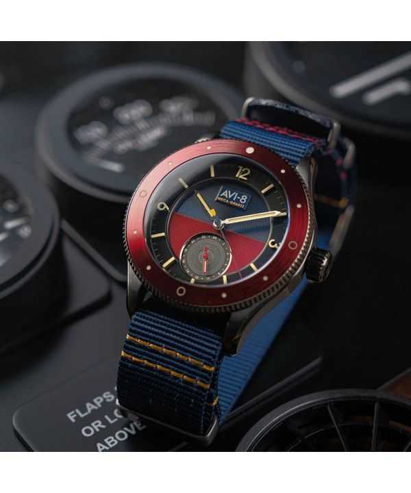 Orologio da uomo AVI-8 Flyboy Airmaster Sector Meca-Quartz con quadrante blu navy e rosso AV-4112-04