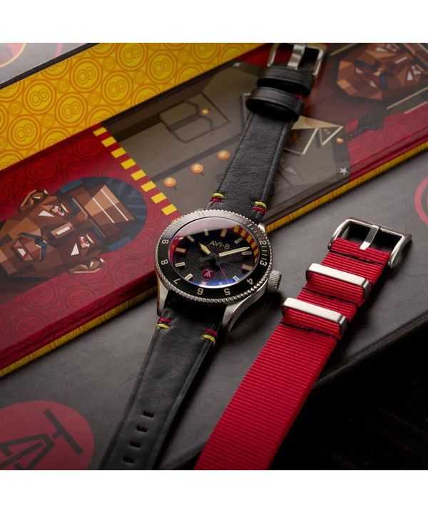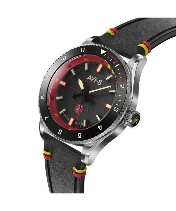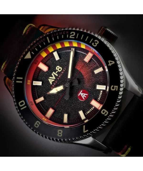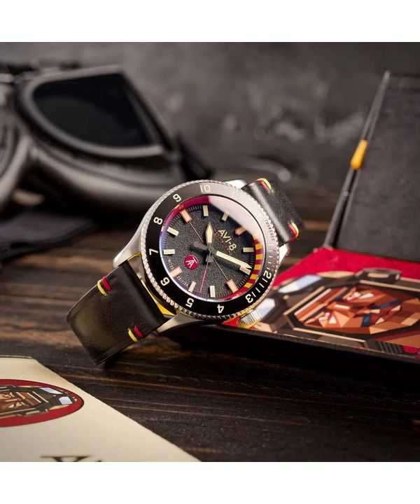 Orologio da uomo AVI-8 Flyboy Tuskegee Airmen Limited Edition Licata quadrante nero al quarzo AV-4103-01 con cinturino extra