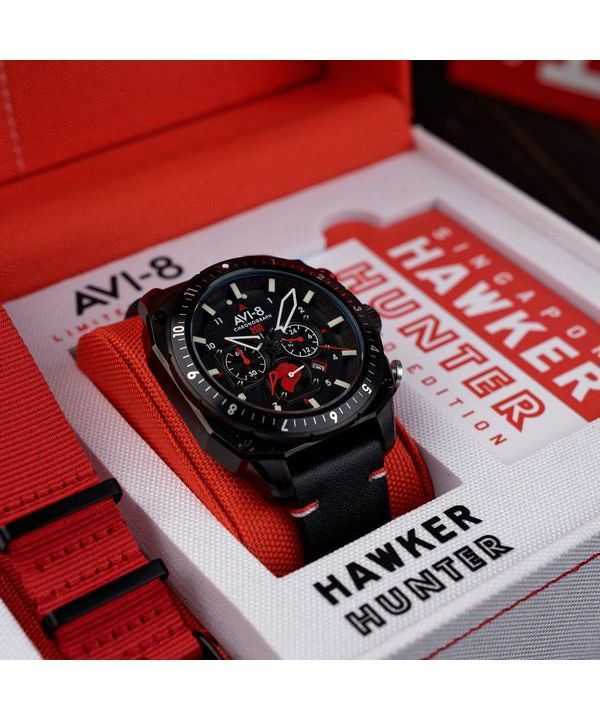 Orologio da uomo AVI-8 Hawker Hunter Atlas Chronograph Singapore Air Force Limited Edition Pegasus Black Quartz AV-4100-0A