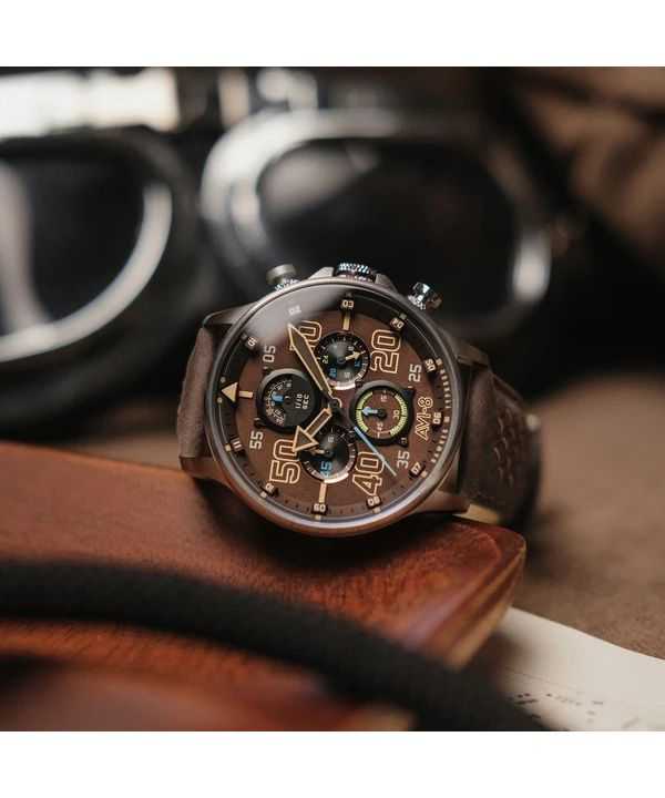 Orologio da uomo AVI-8 Hawker Typhoon Rb396 Sheila cronografo in edizione limitata Westhampnett quadrante marrone al quarzo AV-4