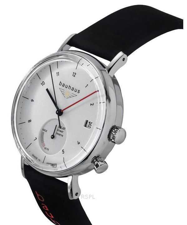 Orologio da uomo Bauhaus Classic con cinturino in pelle nera e quadrante bianco Solar 21121