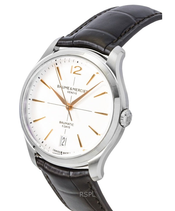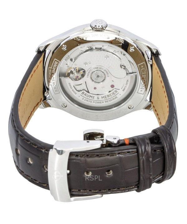 Orologio da uomo Baume & Mercier Clifton con cinturino in pelle e quadrante bianco sporco, automatico M0A10773