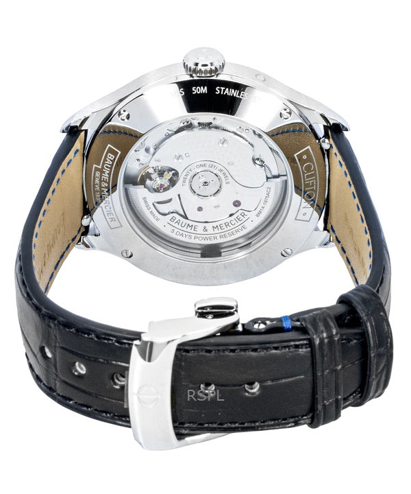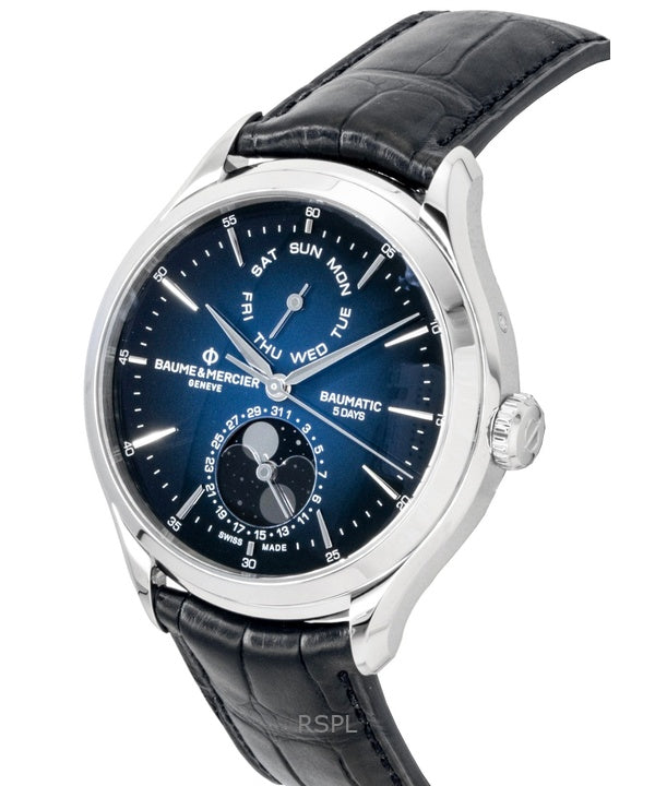 Orologio da uomo Baume & Mercier Clifton con cinturino in pelle, fasi lunari, quadrante blu, automatico M0A10593