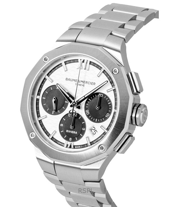 Orologio da uomo Baume & Mercier Riviera Cronografo in acciaio inossidabile con quadrante bianco automatico M0A10827 100M