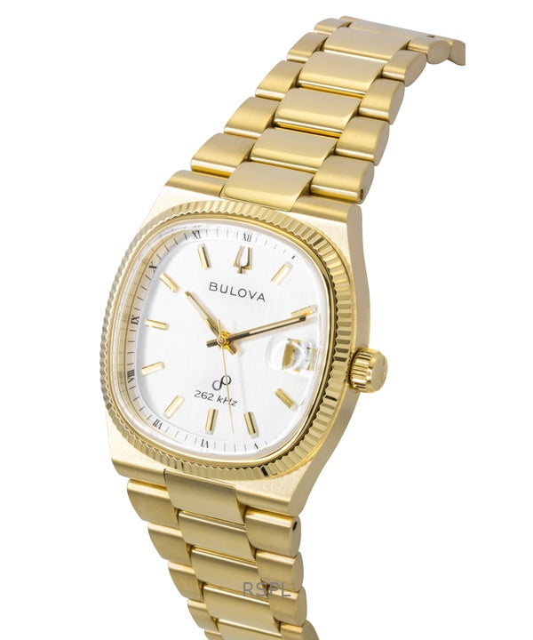 Orologio da uomo Bulova Super Seville in acciaio inossidabile color oro con quadrante bianco al quarzo 97B223