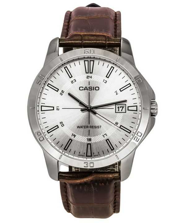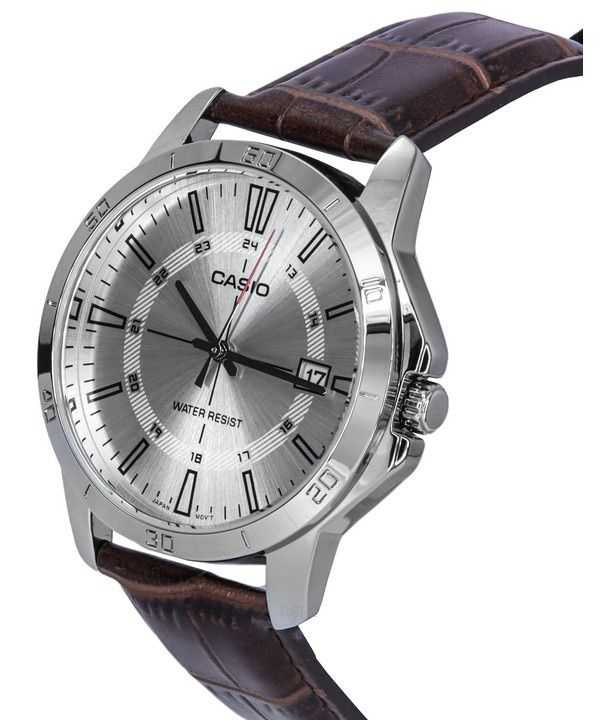 Orologio da uomo Casio analogico standard con cinturino in pelle marrone quadrante argento al quarzo MTP-V004L-7C