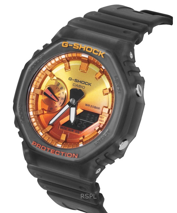Orologio da uomo Casio G-Shock analogico digitale con cinturino in resina e quadrante arancione al quarzo GA-2100FLS-8A4 200M