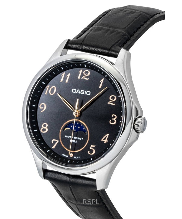 Orologio da uomo Casio Standard Analogico con fasi lunari e cinturino in pelle, quadrante nero al quarzo MTP-M110L-1AV