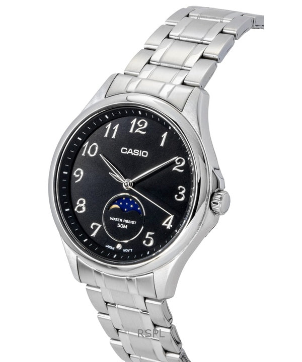 Orologio da uomo Casio Standard Analogico con fasi lunari, in acciaio inossidabile, quadrante nero, al quarzo MTP-M110D-1AV