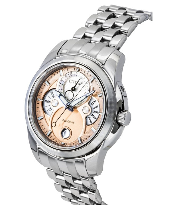 Orologio da uomo Citizen Calendrier Moon Phase in acciaio inossidabile con quadrante color salmone Eco-Drive BU0080-52X 100M