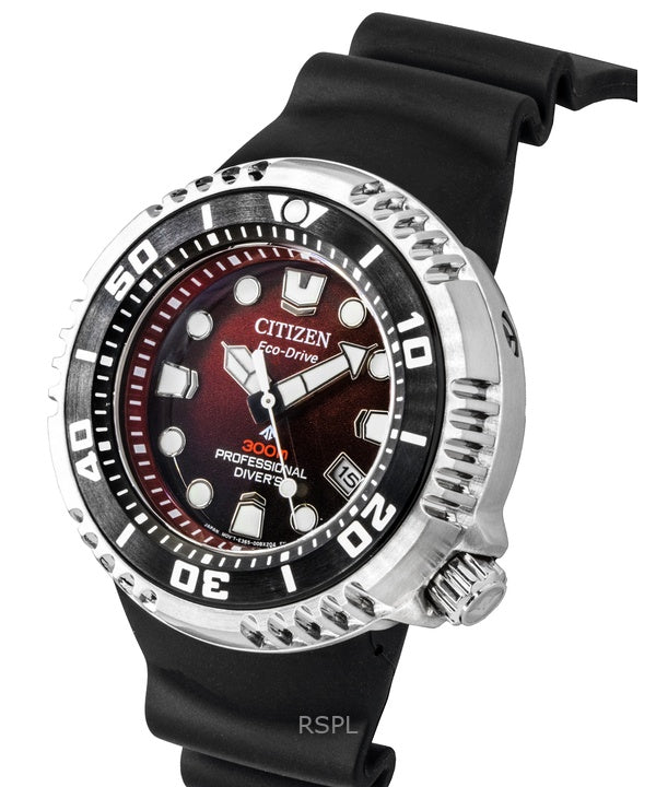 Orologio da uomo Citizen Promaster Eco-Drive Diver's BN1024-01Z 300M con cinturino in poliuretano e quadrante rosso