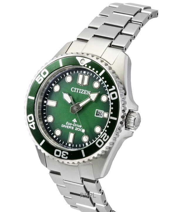 Orologio da uomo Citizen Promaster Marine Eco-Drive Diver's BN0269-50W 200M in acciaio inossidabile con quadrante verde