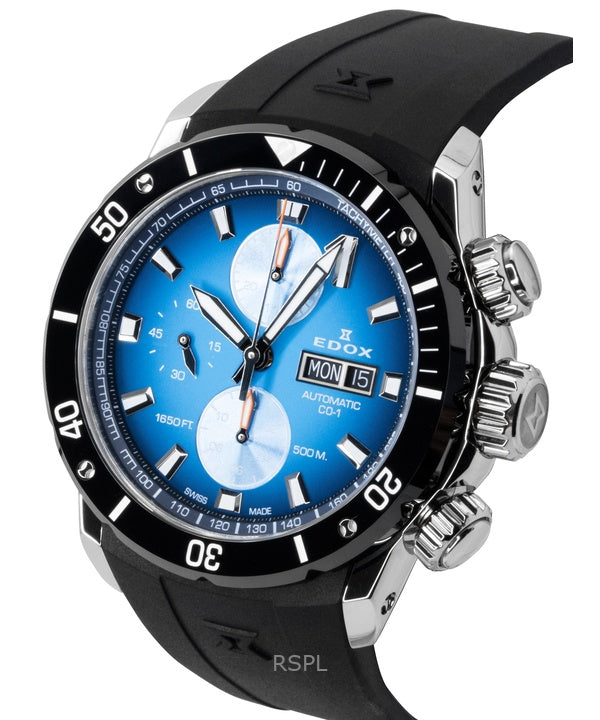 Orologio da uomo Edox CO-1 Cronografo con cinturino in gomma e quadrante blu, automatico, subacqueo, 500 m, 01128-3NOCA-BUIDN