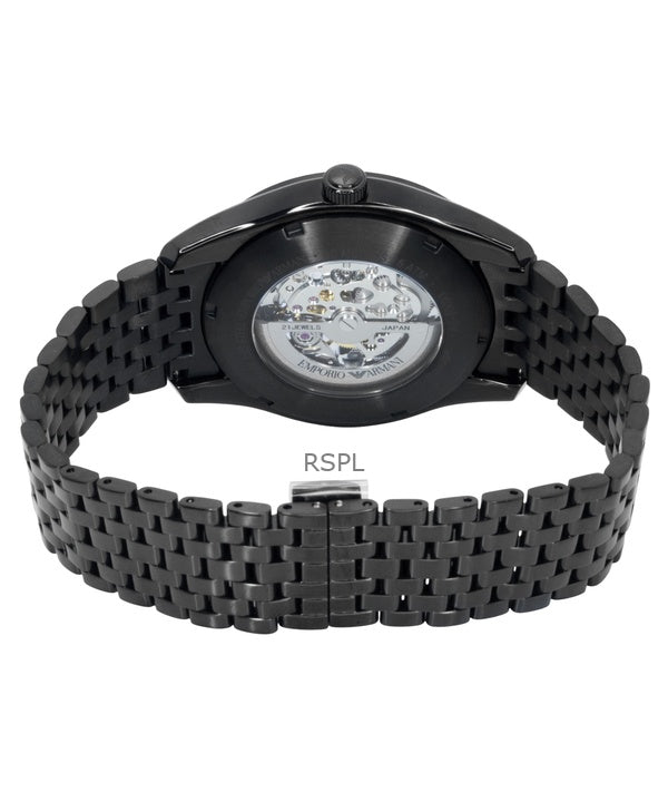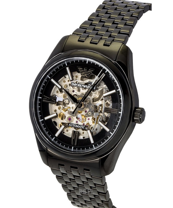 Orologio da uomo Emporio Armani in acciaio inossidabile con quadrante scheletrato nero automatico AR60093