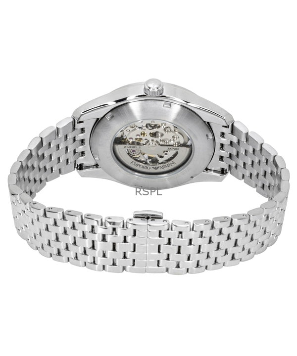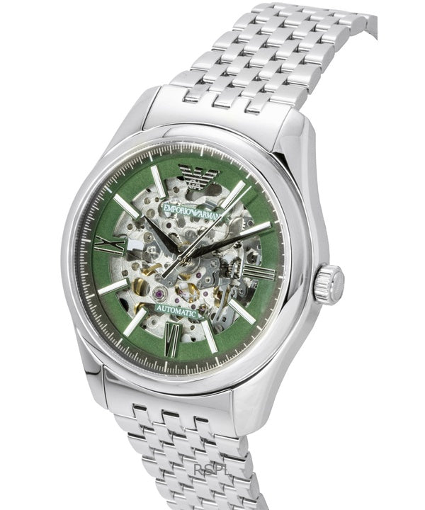 Orologio da uomo Emporio Armani in acciaio inossidabile con quadrante scheletrato verde automatico AR60091