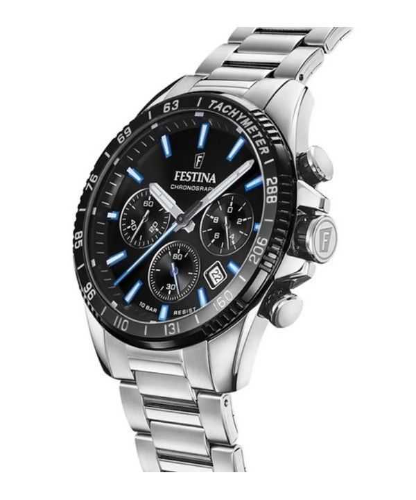 Orologio da uomo Festina Timeless Cronografo in acciaio inossidabile quadrante nero al quarzo F20560-5 100M