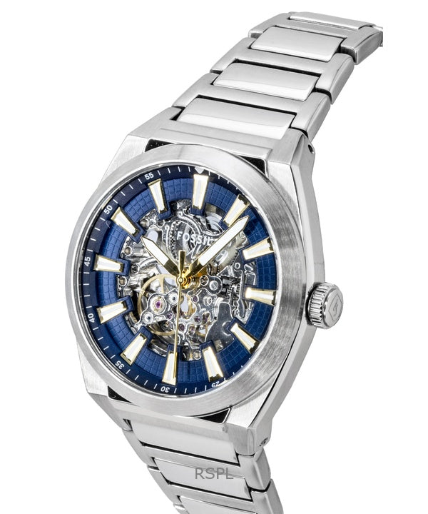 Orologio da uomo Fossil Everett in acciaio inossidabile con quadrante scheletrato blu automatico ME3220