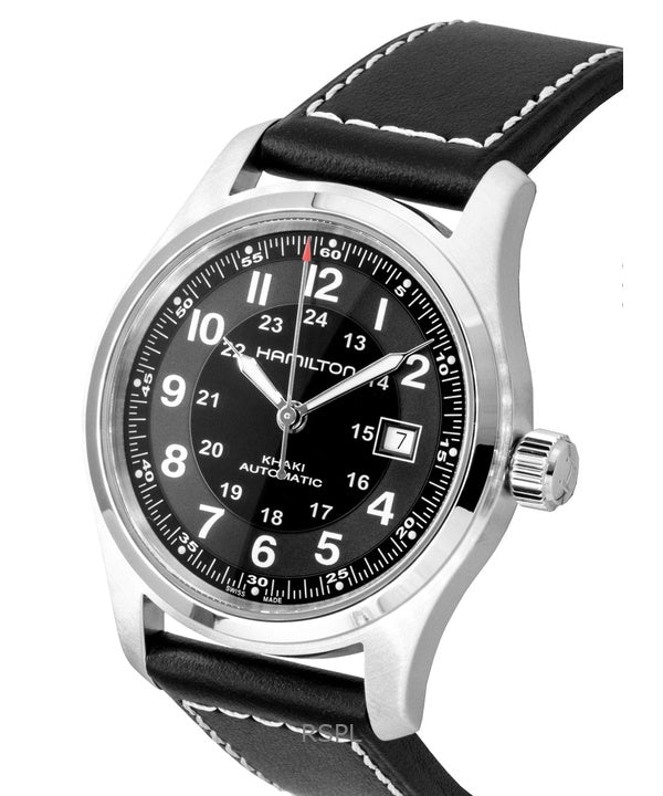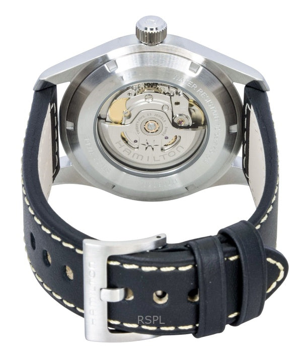 Orologio da uomo Hamilton Khaki con cinturino in pelle e quadrante nero automatico H70605733 100M