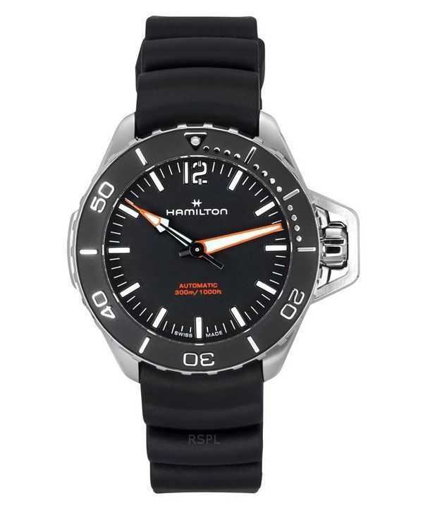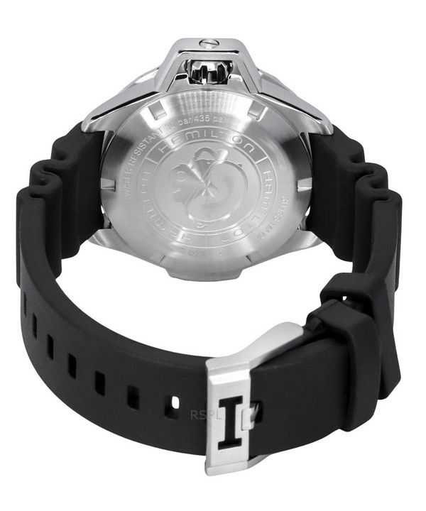 Orologio da uomo Hamilton Khaki Navy Frogman con cinturino in gomma e quadrante nero, automatico, subacqueo H77455330 300M