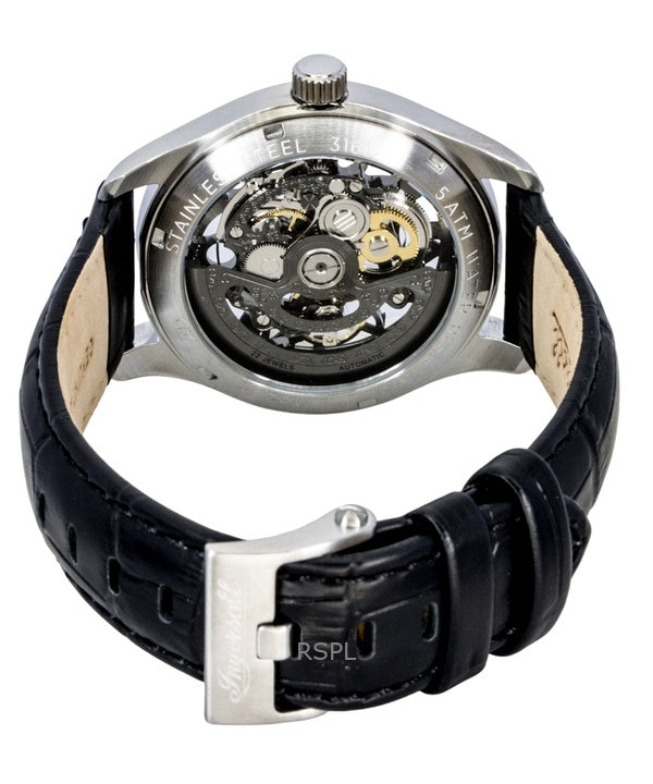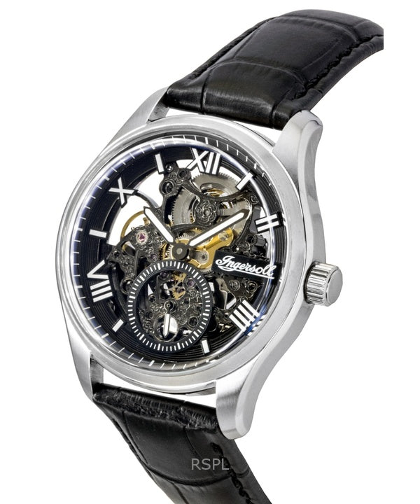 Orologio da uomo Ingersoll The Maverick con cinturino in pelle e quadrante scheletrato nero, automatico I17401