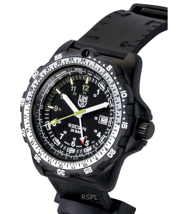 Orologio da uomo Luminox Recon Nav Spec GMT con cinturino in gomma e quadrante nero, al quarzo, subacqueo XL.8837.SET 200M
