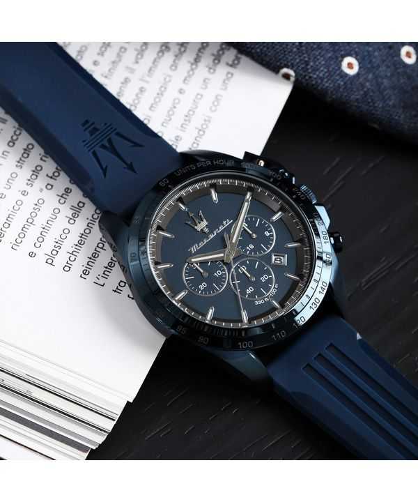 Orologio da uomo Maserati Traguardo cronografo in edizione limitata cinturino in caucciù quadrante blu al quarzo R8871612042 100