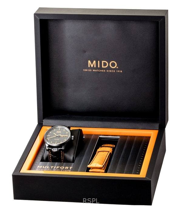 Orologio da uomo Mido Multifort Special Edition con cinturino in pelle e quadrante nero automatico M005.430.36.051.80 100M con cinturino extra