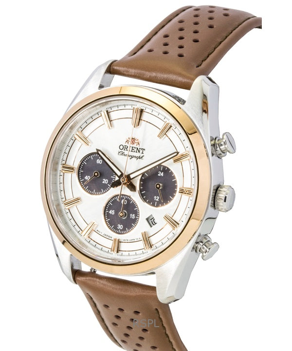 Orologio da uomo Orient Contemporary Chronograph con cinturino in pelle e quadrante bianco al quarzo RA-TX0306S