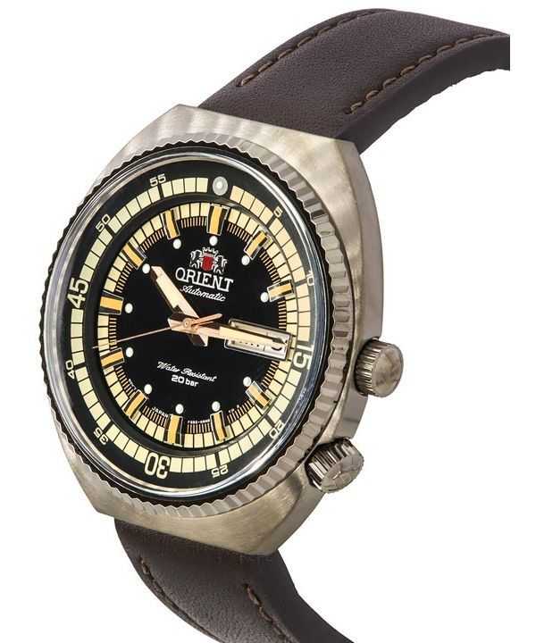 Orologio da uomo Orient Neo Classic Sports con cinturino in pelle marrone e quadrante nero automatico RA-AA0E06B19B RA-AA0E06B39