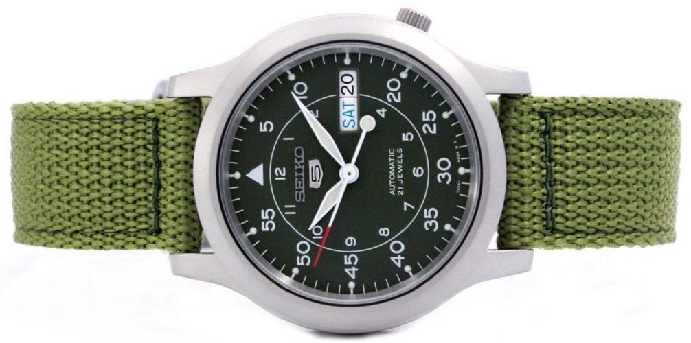Orologio da uomo Seiko 5 ricondizionato con quadrante verde militare automatico SNK805K2