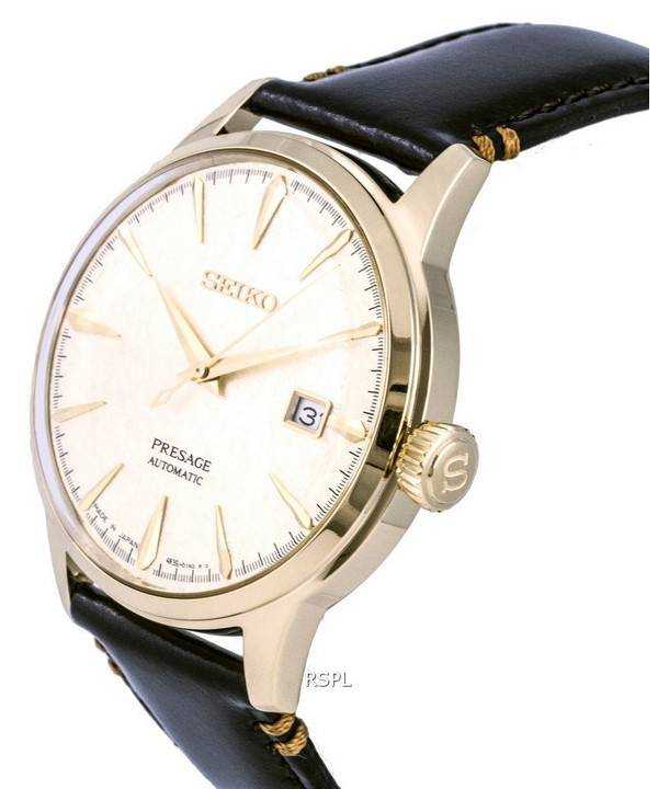 Orologio da uomo Seiko Presage Cocktail in edizione limitata in pelle con quadrante dorato automatico SRPH78 SRPH78J1 SRPH78J