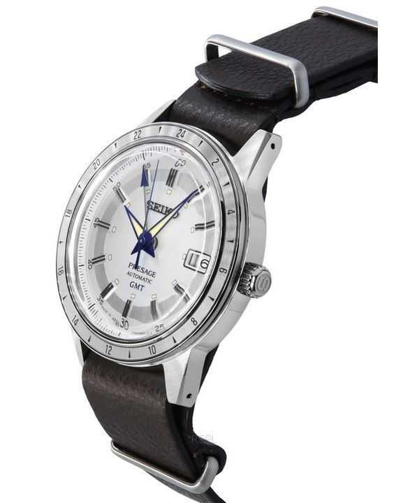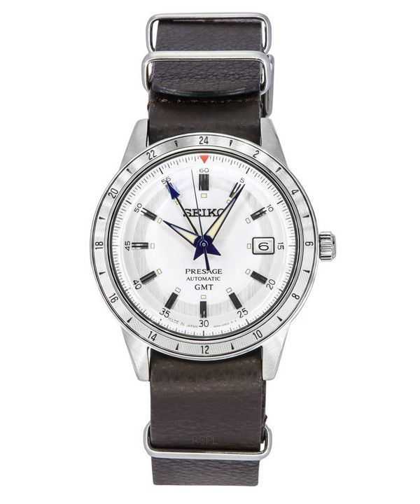 Orologio da uomo Seiko Presage Style60 GMT 110th Anniversary cinturino in pelle con quadrante bianco automatico SSK015J1