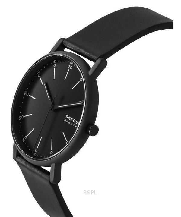 Orologio da uomo Skagen Signatur con cinturino in pelle e quadrante nero al quarzo SKW6902