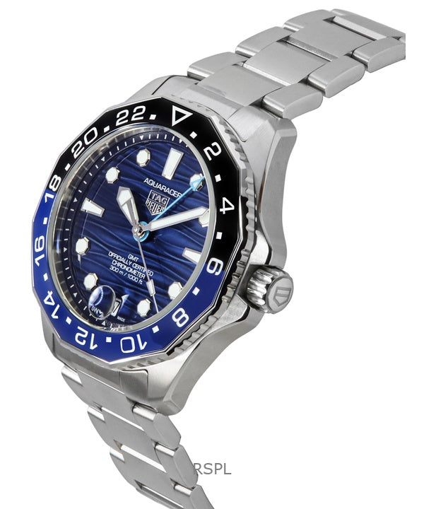 Orologio da uomo TAG Heuer Aquaracer Professional GMT in acciaio inossidabile con quadrante blu, automatico, subacqueo, WBP5114.BA0013, 300 m