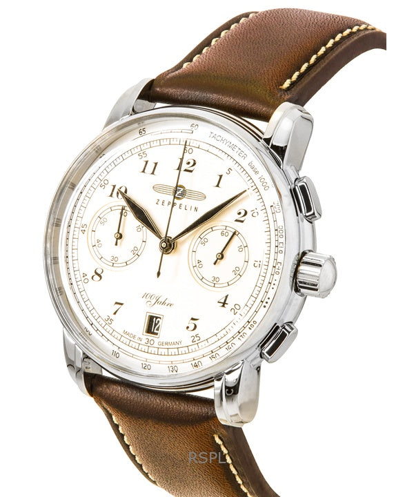 Orologio da uomo Zeppelin 100 Jahre cronografo cinturino in pelle quadrante beige quarzo 76746