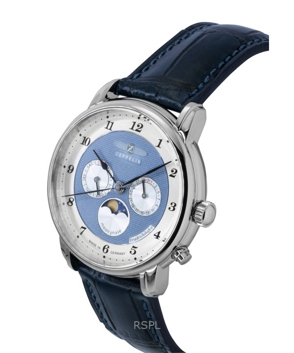 Orologio da uomo Zeppelin Friedrichshafen con cinturino in pelle blu e quadrante blu al quarzo 85363