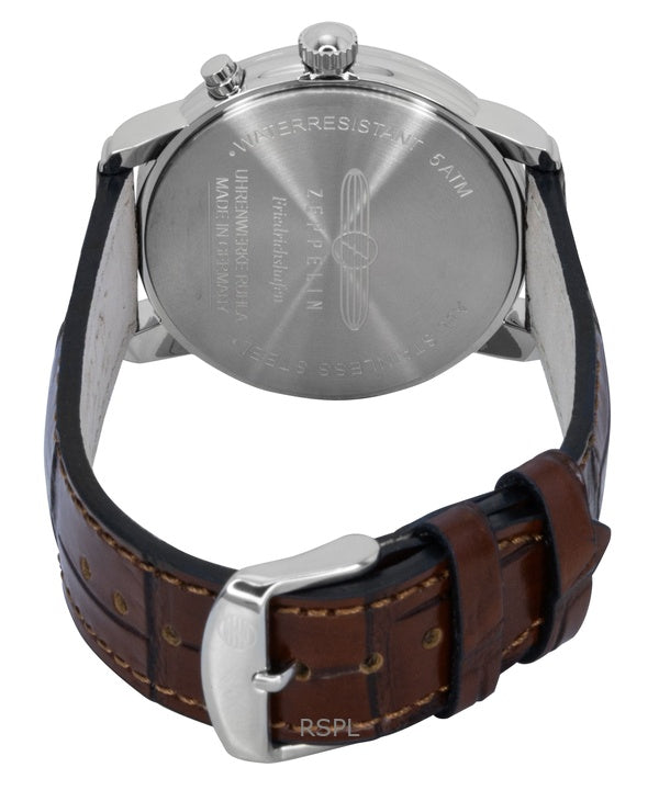 Orologio da uomo Zeppelin Friedrichshafen con cinturino in pelle marrone e quadrante bianco al quarzo 85361