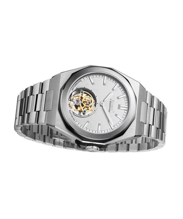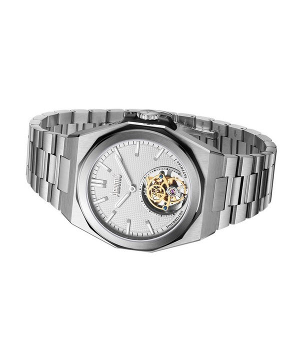 Orologio unisex meccanico Arbutus Tourbillon in acciaio inossidabile con quadrante bianco a cuore aperto AR-TB-13SWS