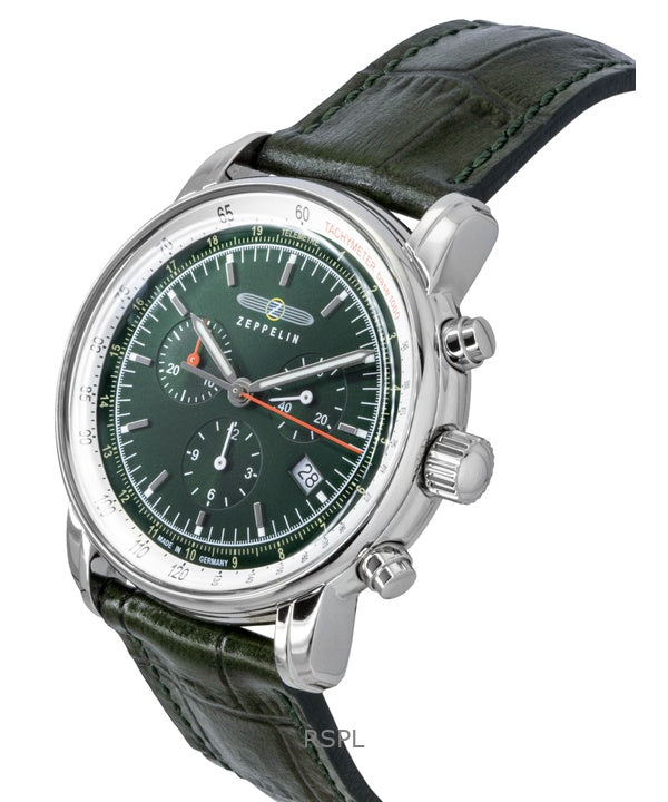 Zeppelin LZ 14 Marine Cronografo Cinturino in Pelle Quadrante Verde Quarzo 88884 Orologio da Uomo